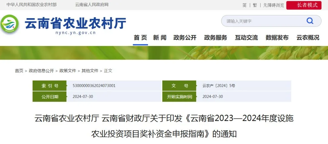 為促進(jìn)云南省設(shè)施農(nóng)業(yè)生產(chǎn)提檔升級(jí)和全產(chǎn)業(yè)鏈發(fā)展,根據(jù)相關(guān)文件要求,云南省農(nóng)業(yè)農(nóng)村廳、云南省財(cái)政廳制定《云南省2023—2024年度設(shè)施農(nóng)業(yè)投資項(xiàng)目獎(jiǎng)補(bǔ)資金申報(bào)指南》,要求加大政策宣傳力度,確保符合條件的農(nóng)業(yè)生產(chǎn)經(jīng)營(yíng)主體及時(shí)了解相關(guān)政策,積極組織申報(bào),公開(kāi)公平公正遴選項(xiàng)目,切實(shí)推進(jìn)政策落實(shí)落地。