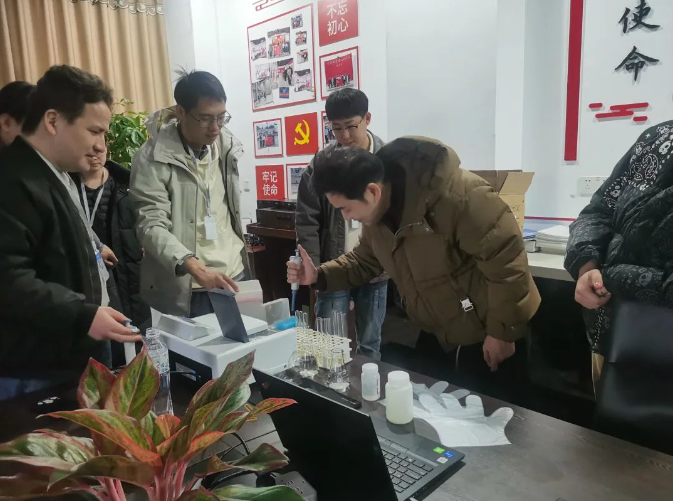 內(nèi)訓(xùn)師以淺顯易懂的方式介紹了污水污染物常規(guī)檢測的各種方法,在活動現(xiàn)場進(jìn)行了RAS循環(huán)水養(yǎng)殖尾水水質(zhì)簡易檢測的實(shí)操活動,并且與參會人員積極互動,帶領(lǐng)他們上手實(shí)踐,加深了技術(shù)人員對RAS循環(huán)水養(yǎng)殖尾水水質(zhì)檢測的理解。