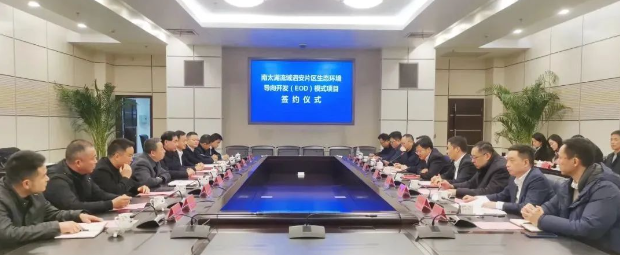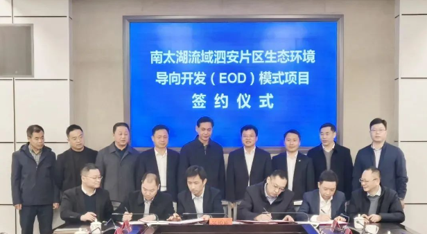 簽約儀式上,長(zhǎng)興縣人民政府代表與葛洲壩生態(tài)環(huán)保公司、葛洲壩生態(tài)環(huán)保公司所屬生態(tài)建設(shè)公司、浙江商達(dá)公用集團(tuán)有限公司、長(zhǎng)興富美城鄉(xiāng)環(huán)境治理有限公司、中國(guó)公路工程咨詢集團(tuán)有限公司共同簽署長(zhǎng)興南太湖流域泗安片區(qū)生態(tài)環(huán)境導(dǎo)向開發(fā)EOD項(xiàng)目投資合作協(xié)議。