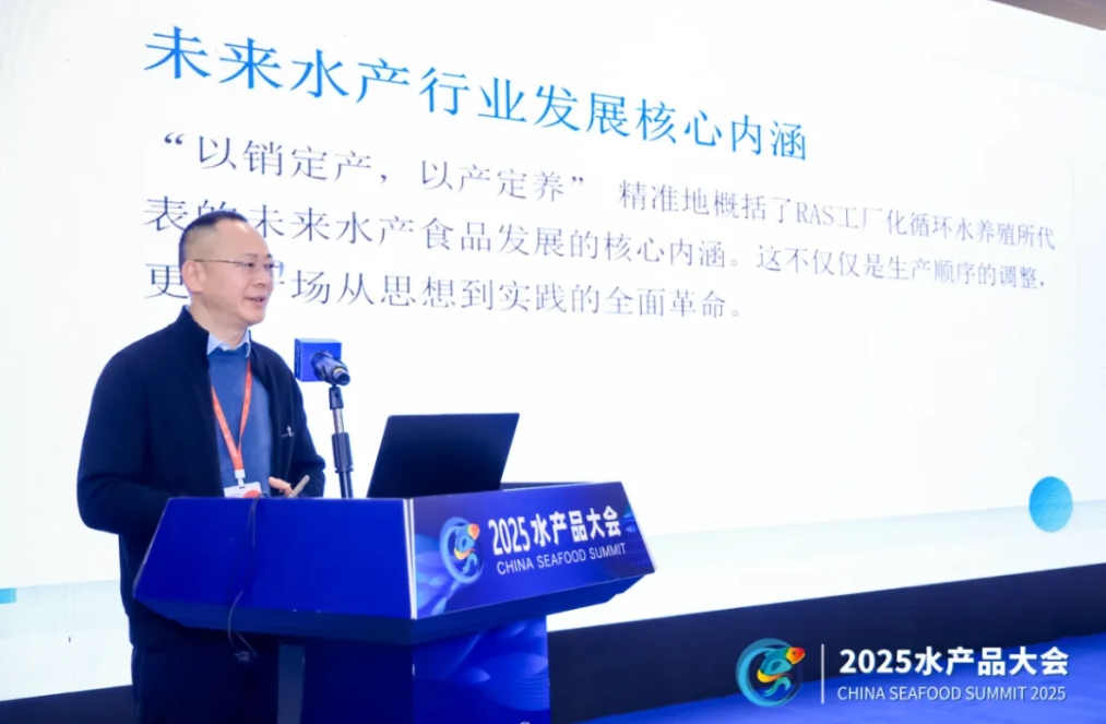 在主旨報(bào)告環(huán)節(jié),鄭展望教授以“商達(dá)RAS未來(lái)水產(chǎn)5.0創(chuàng)新發(fā)展實(shí)踐”為題,系統(tǒng)闡釋了商達(dá)在智慧漁業(yè)領(lǐng)域的突破性探索。他指出,面對(duì)全球食品產(chǎn)業(yè)迫切的升級(jí)需求,商達(dá)以生物技術(shù)(BT)、信息技術(shù)(IT)、食品技術(shù)(FT)深度融合為核心驅(qū)動(dòng)力,構(gòu)建了兼具“標(biāo)準(zhǔn)化、智慧化、高效化、生態(tài)化、高值化”的未來(lái)水產(chǎn)養(yǎng)殖新模式。