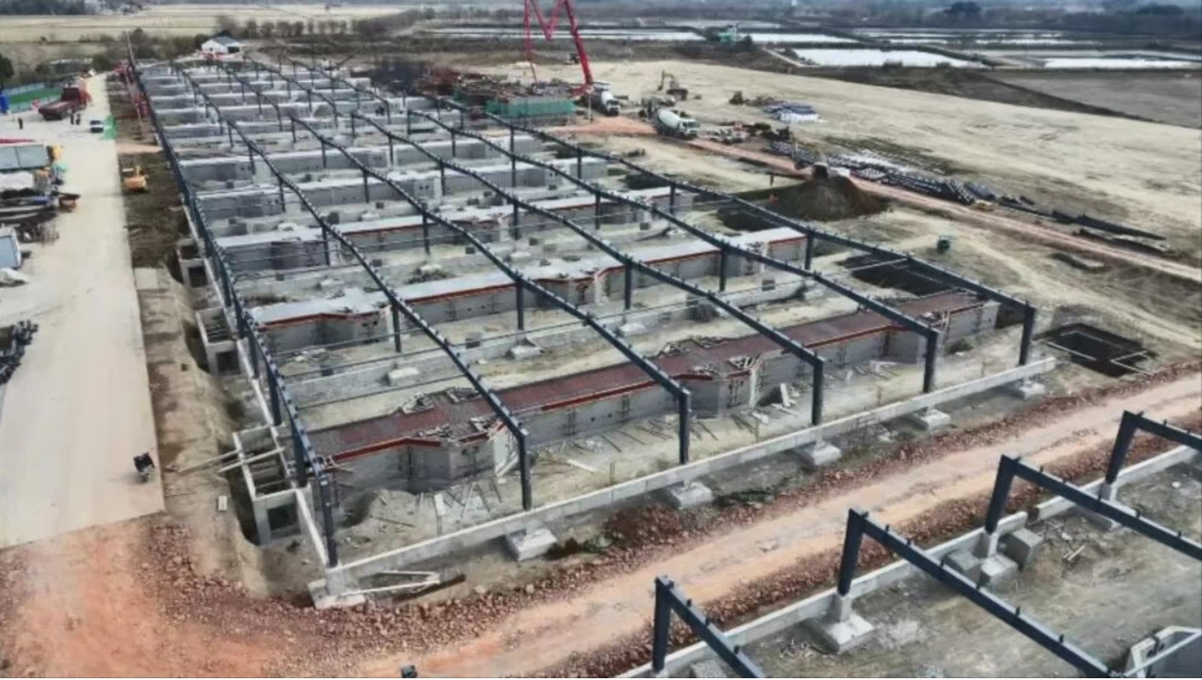 項目自今年下半年正式開工以來,建設進程高效推進,目前,1號車間基礎施工已完成90%,2號車間基礎施工完成80%,正同步開展鋼結構安裝作業(yè);3號、4號、5號車間養(yǎng)殖區(qū)則已提前完成鋼結構安裝,現(xiàn)階段重點推進水處理區(qū)微濾池底板澆筑及模板支設工作,為后續(xù)設備安裝奠定基礎。