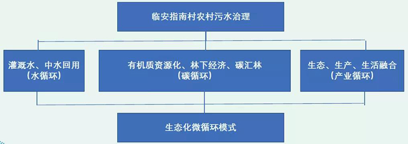 浙江農(nóng)林大學(xué)農(nóng)村環(huán)境研究所和雙良商達(dá)通過(guò)產(chǎn)學(xué)研,在臨安指南村通過(guò)機(jī)制、技術(shù)創(chuàng)新,將農(nóng)村污水治理與鄉(xiāng)村振興各產(chǎn)業(yè)以及碳中和相融合,建立“生態(tài)、生產(chǎn)、生活”三生共融的生態(tài)微循環(huán)模式,包括水循環(huán)、碳循環(huán)、產(chǎn)業(yè)循環(huán)等,探索綠水青山就是金山銀山閉環(huán)