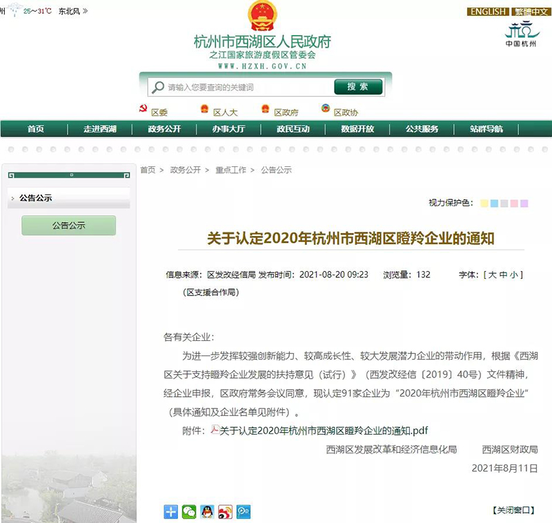 為進一步發(fā)揮較強創(chuàng)新能力,較高成長性、較大發(fā)展?jié)摿Φ钠髽I(yè)帶動作用,更好地樹立企業(yè)示范創(chuàng)新,近日,杭州西湖區(qū)發(fā)展改革和經(jīng)濟信息化局、西湖區(qū)財政局公布了2020年度杭州市西湖區(qū)“瞪羚企業(yè)”認定榜單,雙良商達入選該榜單。