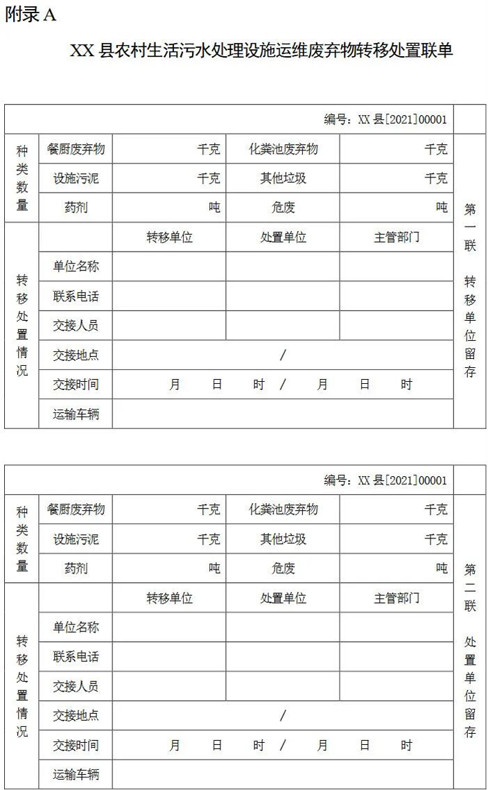 3.0.9 運維廢棄物在轉(zhuǎn)運、處置中應做好臺賬記錄,可采用三聯(lián)單(詳見附錄A)、合同和支付憑證等。