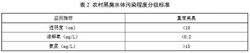 5)根據(jù)水質(zhì)監(jiān)測結(jié)果,污染程度屬重度黑臭的。水體的透明度、溶解氧、氨氮 3 項(xiàng)指標(biāo)中 1 項(xiàng)指標(biāo) 60%以上數(shù)據(jù)或不少于 2 項(xiàng)指標(biāo) 30%以上數(shù)據(jù)達(dá)到表 2“重度黑臭”級別的,認(rèn)定為“重度黑臭”,否則為“輕度黑臭”。