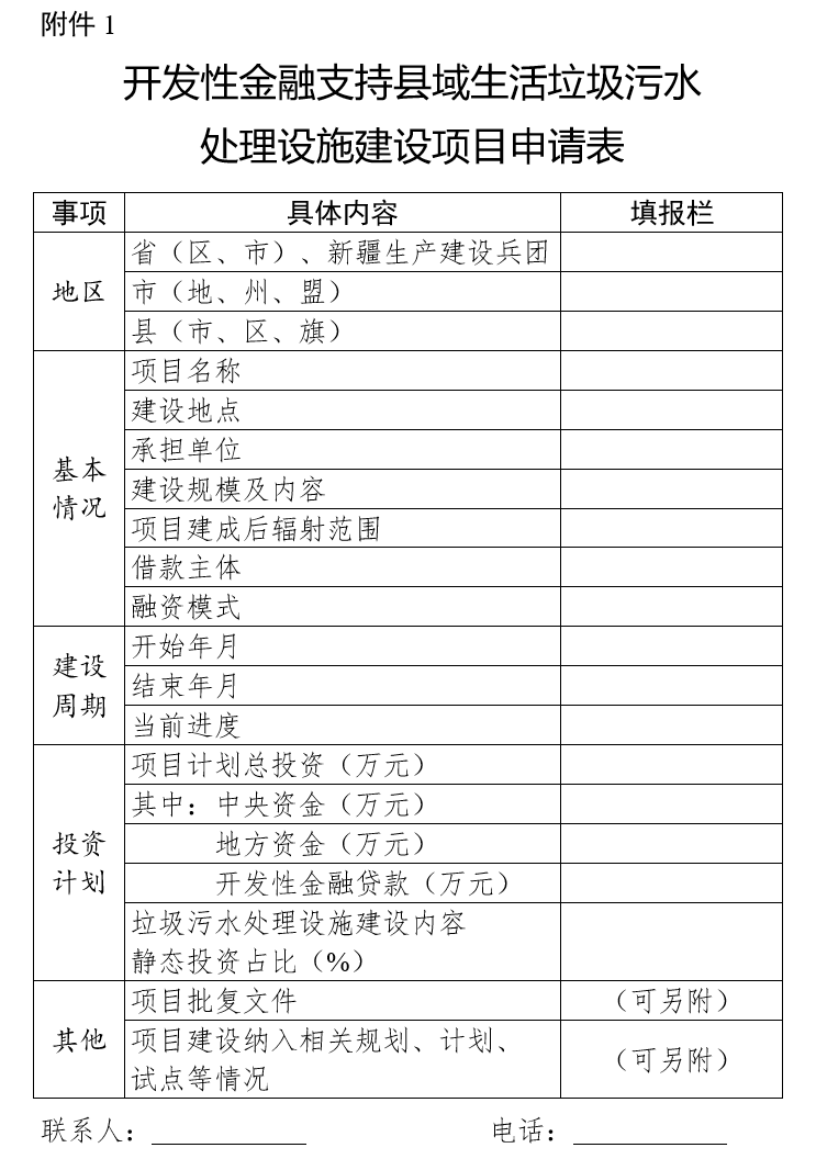 1.開發(fā)性金融支持縣域生活垃圾污水處理設(shè)施建設(shè)項目申請表