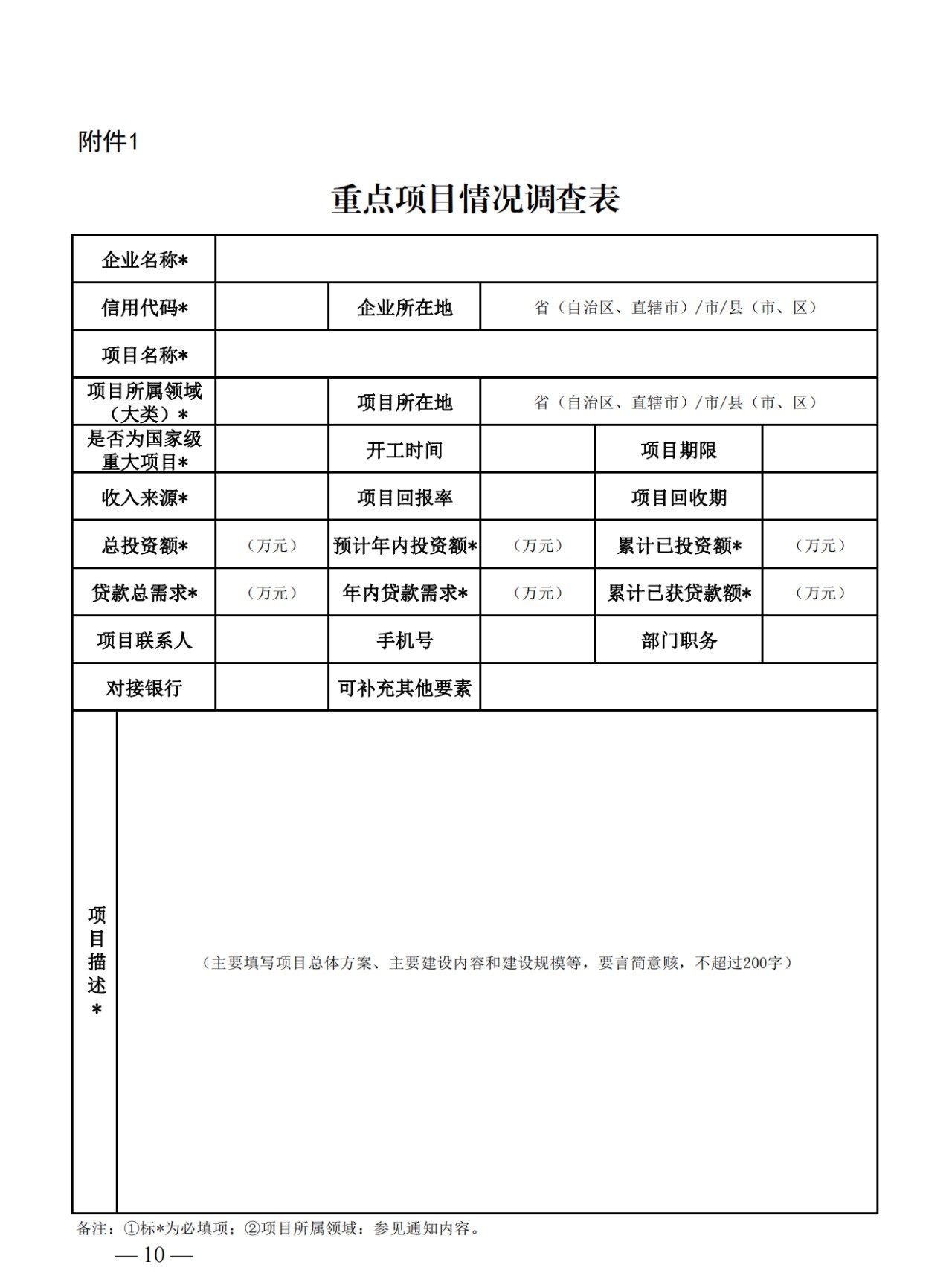 (二)全面梳理項(xiàng)目。要全面調(diào)查梳理當(dāng)?shù)刎叫杞鹑谥С值霓r(nóng)業(yè)農(nóng)村基礎(chǔ)設(shè)施重點(diǎn)項(xiàng)目,充分調(diào)動國有企業(yè)、民營企業(yè)等承貸主體積極性,指導(dǎo)承貸主體填寫《重點(diǎn)項(xiàng)目情況調(diào)查表》(附件1),篩選形成重點(diǎn)項(xiàng)目“白名單”,填寫《重點(diǎn)項(xiàng)目情況統(tǒng)計表》(附件2),嚴(yán)格把關(guān)項(xiàng)目范圍。農(nóng)業(yè)農(nóng)村部、國家鄉(xiāng)村振興局業(yè)務(wù)主管司局要立足職能,加大調(diào)度,指導(dǎo)地方做好調(diào)查梳理工作。各級農(nóng)業(yè)農(nóng)村部門要用好信息化手段,指導(dǎo)重點(diǎn)項(xiàng)目承貸主體掃描農(nóng)業(yè)經(jīng)營主體信貸直通車專屬二維碼(附件3)進(jìn)行填報,建立線上報送渠道和在線調(diào)度監(jiān)測機(jī)制。各級鄉(xiāng)村振興部門要用好鞏固拓展脫貧攻堅成果和鄉(xiāng)村振興項(xiàng)目庫等數(shù)據(jù)信息,針對性篩選重點(diǎn)項(xiàng)目,在此基礎(chǔ)上指導(dǎo)承貸主體補(bǔ)充相關(guān)信息。