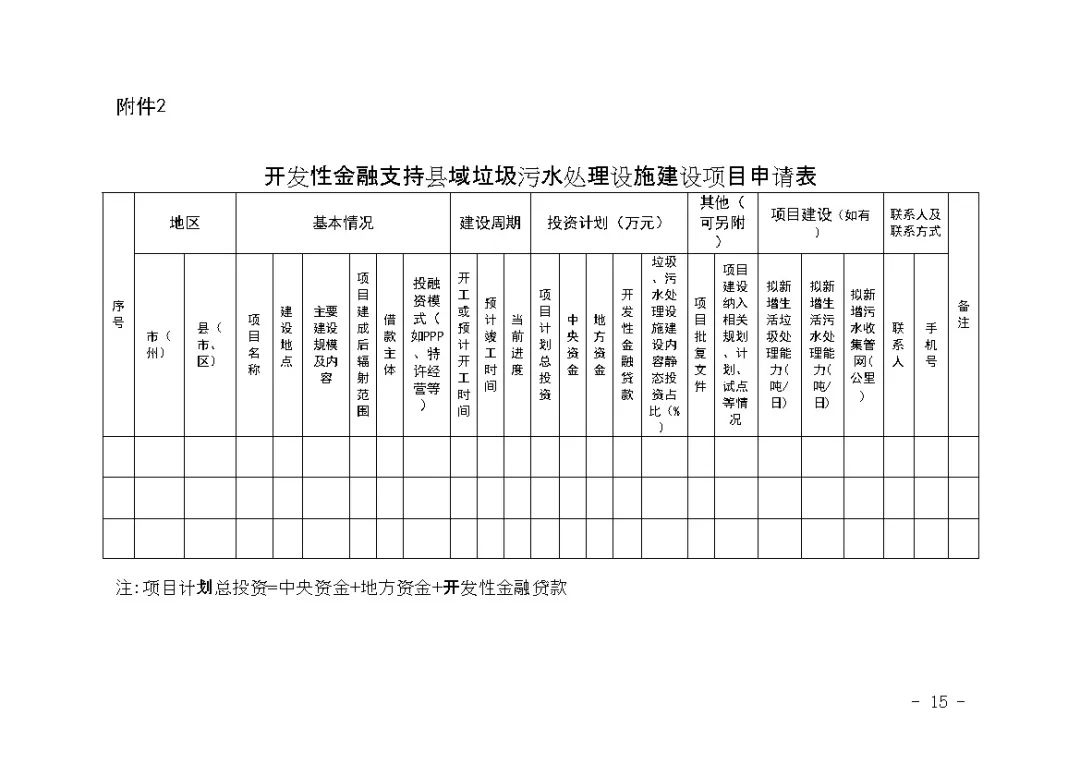 2.開發(fā)性金融支持縣域垃圾污水處理設(shè)施建設(shè)項(xiàng)目申請表