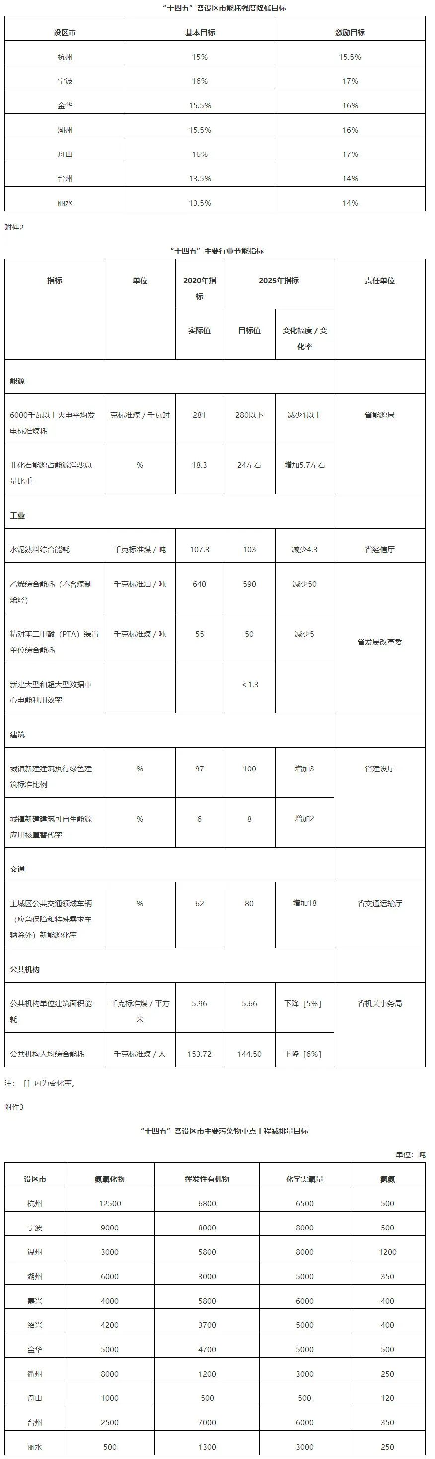 為切實做好我省“十四五”節(jié)能減排工作,根據(jù)《國務(wù)院關(guān)于印發(fā)“十四五”節(jié)能減排綜合工作方案的通知》(國發(fā)〔2021〕33號)要求,制定本方案。以習(xí)近平新時代中國特色社會主義思想為指導(dǎo),全面貫徹黨的十九大和十九屆歷次全會精神,深入踐行習(xí)近平生態(tài)文明思想,完整、準確、全面貫徹新發(fā)展理念,堅決遏制高耗能高排放項目(以下稱“兩高”項目)盲目發(fā)展,完善能源消費強度和總量雙控(以下稱能耗雙控)制度,落實主要污染物排放總量控制制度,組織實施節(jié)能減排重點工程,確保完成“十四五”節(jié)能減排目標(biāo)任務(wù),實現(xiàn)減污降碳協(xié)同增效、生態(tài)環(huán)境質(zhì)量持續(xù)改善,為實現(xiàn)碳達峰碳中和階段性目標(biāo)奠定堅實基礎(chǔ)。節(jié)能減排政策機制更加健全。到2025年,全省單位生產(chǎn)總值能源消耗比2020年下降14.5%,能源消費總量得到合理控制,煤炭消費總量比2020年下降5%左右、控制在1.24億噸左右,氮氧化物、揮發(fā)性有機物、化學(xué)需氧量、氨氮重點工程減排量分別達到5.50萬噸、4.76萬噸、5.43萬噸、0.36萬噸。(一)工業(yè)節(jié)能降碳工程。開展新一輪制造業(yè)“騰籠換鳥、鳳凰涅槃”攻堅行動,全省淘汰落后產(chǎn)能企業(yè)和整治提升高耗低效企業(yè)15000家以上。以鋼鐵、建材、石化、化工、化纖、造紙、紡織等七大行業(yè)為重點,開展公共用能系統(tǒng)能效診斷,每年組織實施百個省級重點節(jié)能降碳技術(shù)改造項目。推進鋼鐵、水泥、焦化行業(yè)超低排放改造,2025年全面完成鋼鐵、水泥超低排放改造。建立健全綠色低碳技術(shù)推廣機制,探索氫能冶煉及非高爐冶煉、二氧化碳捕集利用一體化等低碳技術(shù)應(yīng)用。實施涂裝類、化工類等產(chǎn)業(yè)集群分類治理,開展重點行業(yè)清潔生產(chǎn)和工業(yè)廢水資源化利用改造。拓展節(jié)能減排工作覆蓋面,開展數(shù)據(jù)中心能效提升行動,推進景觀亮化工程節(jié)能?!笆奈濉睍r期,規(guī)上工業(yè)單位增加值能耗下降16%以上(扣除國家單列項目后),萬元工業(yè)增加值用水量下降18%。到2025年,力爭鋼鐵、建材、石化、化工、有色金屬等重點領(lǐng)域能效標(biāo)桿水平產(chǎn)能比例達到50%。(責(zé)任單位:省經(jīng)信廳、省發(fā)展改革委、省生態(tài)環(huán)境廳、省水利廳、省應(yīng)急管理廳、省市場監(jiān)管局、省能源局、省電力公司。列第一位的為牽頭單位,各市、縣〔市、區(qū)〕政府為責(zé)任主體,下同)(二)重大平臺節(jié)能環(huán)保提升工程。實現(xiàn)重大產(chǎn)業(yè)平臺能源系統(tǒng)整體優(yōu)化,全面實施區(qū)域能評改革2.0版,建立健全重大產(chǎn)業(yè)平臺區(qū)域能評事中事后監(jiān)管制度,定期發(fā)布重大產(chǎn)業(yè)平臺能效評估報告。實施園區(qū)綠色低碳發(fā)展提檔行動,推進園區(qū)空間布局優(yōu)化、產(chǎn)業(yè)循環(huán)鏈接、資源高效利用、節(jié)能降碳改造。開展“污水零直排區(qū)”、清新園區(qū)和“無廢城市”建設(shè),推動揮發(fā)性有機物、電鍍廢水及特種污染物集中治理等“綠島”項目建設(shè)。到2025年,重大平臺區(qū)域能評覆蓋率達到100%,60%的省級以上開發(fā)區(qū)(園區(qū))建成清新園區(qū),所有設(shè)區(qū)市及60%的縣(市、區(qū))建成“無廢城市”。(責(zé)任單位:省發(fā)展改革委、省科技廳、省生態(tài)環(huán)境廳、省商務(wù)廳、省能源局)(三)城鎮(zhèn)建筑節(jié)能提升工程。全面貫徹城鎮(zhèn)建筑綠色低碳規(guī)劃、綠色設(shè)計、綠色施工管理的理念,推進低碳城市、韌性城市、海綿城市建設(shè)。城鎮(zhèn)新建民用建筑全面實施低能耗建筑標(biāo)準,加快發(fā)展超低能耗建筑。穩(wěn)步推進既有建筑節(jié)能改造。推進可再生能源的建筑應(yīng)用。開展綠色高效制冷行動,更新升級制冷技術(shù)和設(shè)備,提升制冷系統(tǒng)能效水平。實施公共供水管網(wǎng)漏損治理工程。到2025年,城鎮(zhèn)新建公共建筑和居住建筑設(shè)計節(jié)能率提升至75%以上,全面執(zhí)行綠色建筑標(biāo)準。(責(zé)任單位:省建設(shè)廳、省自然資源廳、省生態(tài)環(huán)境廳、省交通運輸廳、省機關(guān)事務(wù)局、省能源局)(四)交通物流節(jié)能減排工程。加快美麗公路、美麗航道、城鄉(xiāng)綠道網(wǎng)建設(shè),推進充電樁等基礎(chǔ)設(shè)施建設(shè)。提高城市公交、出租、物流等交通車輛新能源化率,加強船舶清潔能源推廣應(yīng)用。積極應(yīng)用大數(shù)據(jù)優(yōu)化運輸組織方式,發(fā)展智能交通,推動大宗貨物和中長距離運輸“公轉(zhuǎn)水”“公轉(zhuǎn)鐵”,發(fā)展以“四港聯(lián)動”為核心的多式聯(lián)運。全面實施汽車國六排放標(biāo)準和非道路移動柴油機械國四排放標(biāo)準,基本淘汰國三以下排放標(biāo)準汽車,加快淘汰國四排放標(biāo)準營運柴油貨車。深入實施清潔柴油機行動,鼓勵重型營運柴油貨車更新替代。實施汽車排放檢驗與維護制度。推進港口岸電設(shè)施建設(shè)。加快綠色倉儲建設(shè),鼓勵建設(shè)綠色物流園區(qū)。加快標(biāo)準化物流周轉(zhuǎn)箱推廣應(yīng)用。開展郵政業(yè)綠色網(wǎng)點和