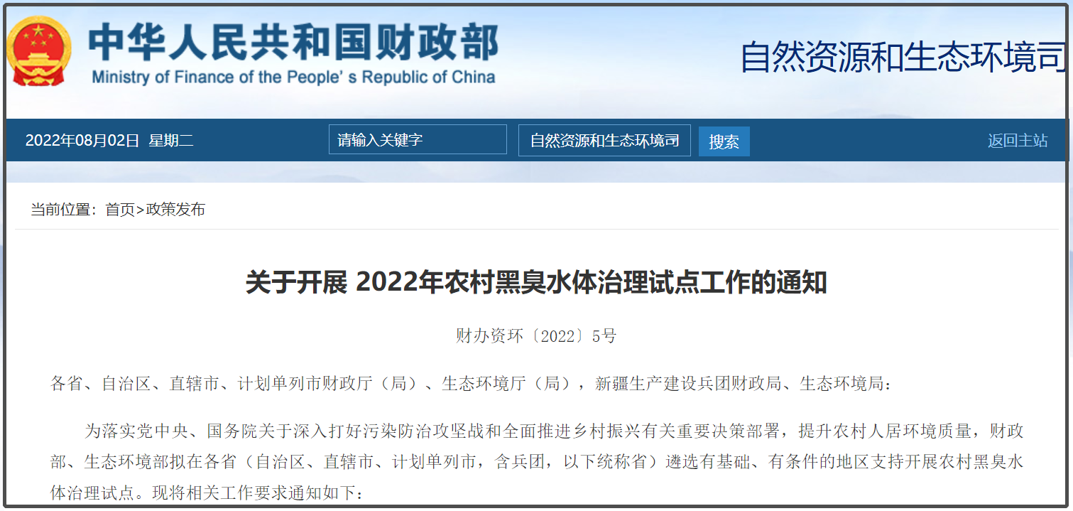 也正因如此,今年2月份生態(tài)環(huán)境部、財政部在《關(guān)于開展 2022年農(nóng)村黑臭水體治理試點工作的通知》中明確指出:試點城市要因地制宜開展治理。根據(jù)污染成因,結(jié)合農(nóng)村類型、自然環(huán)境及經(jīng)濟發(fā)展水平等因地制宜開展試點。