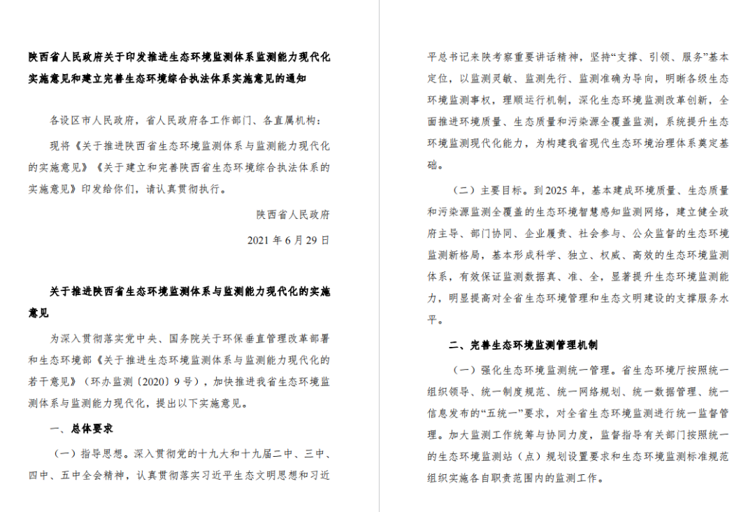 10、《陜西省人民政府關(guān)于印發(fā)推進生態(tài)環(huán)境監(jiān)測體系監(jiān)測能力現(xiàn)代化實施意見和建立完善生態(tài)環(huán)境綜合執(zhí)法體系實施意見的通知》