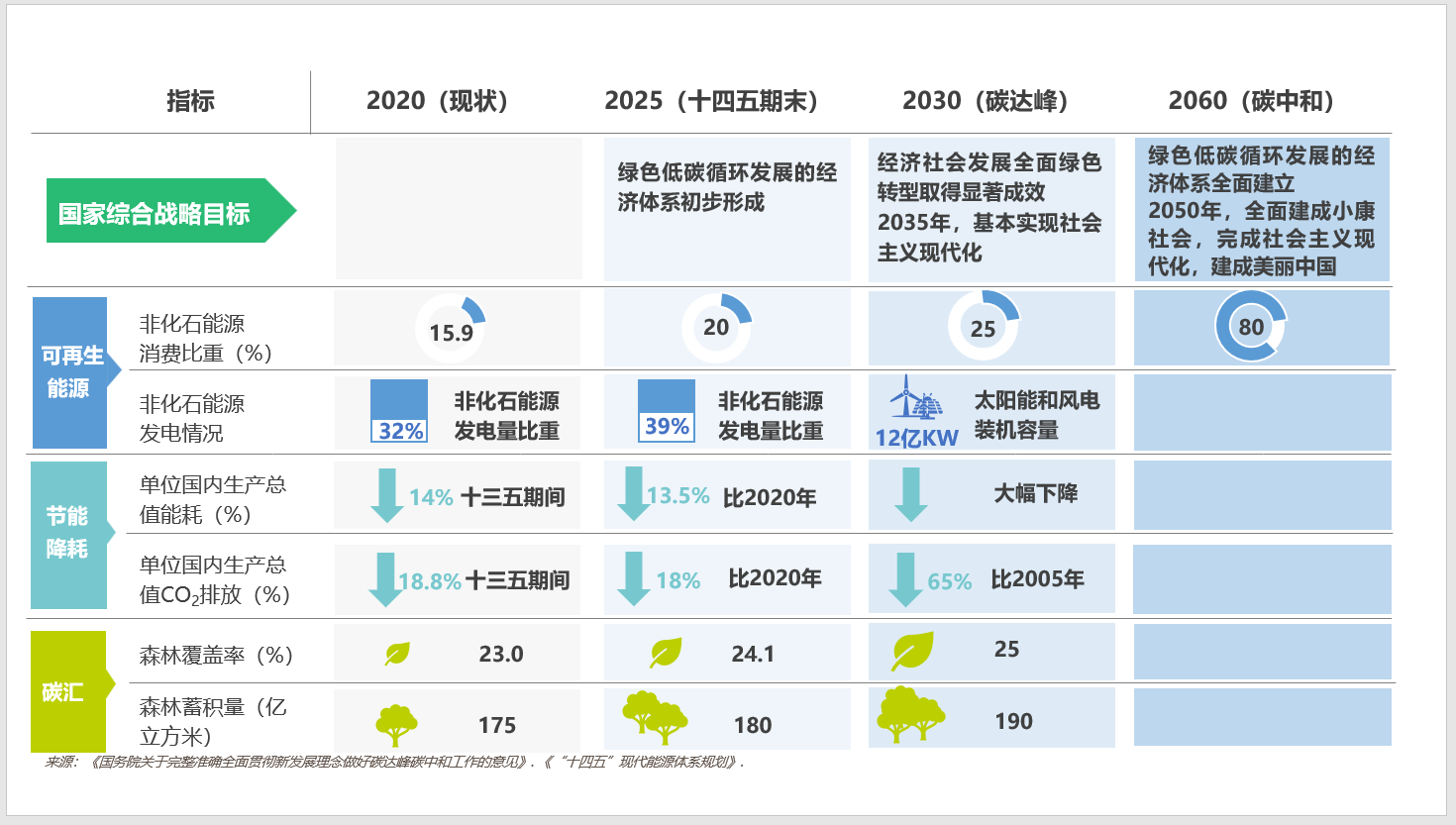 2021年10月,中國(guó)向聯(lián)合國(guó)提交了最新的國(guó)家自主貢獻(xiàn)(NDC)和長(zhǎng)期排放控制戰(zhàn)略。根據(jù)中國(guó)最新的NDC,除了延續(xù)2015年提出的2030碳達(dá)峰目標(biāo),中國(guó)進(jìn)一步強(qiáng)調(diào)了在2060年實(shí)現(xiàn)碳中和的承諾。此次國(guó)家自主貢獻(xiàn)還把2030年碳排放強(qiáng)度減排目標(biāo)(以2005年為基準(zhǔn))從原來(lái)60%-65%提高到65%以上,雙碳目標(biāo)已經(jīng)納入國(guó)家總體發(fā)展戰(zhàn)略。