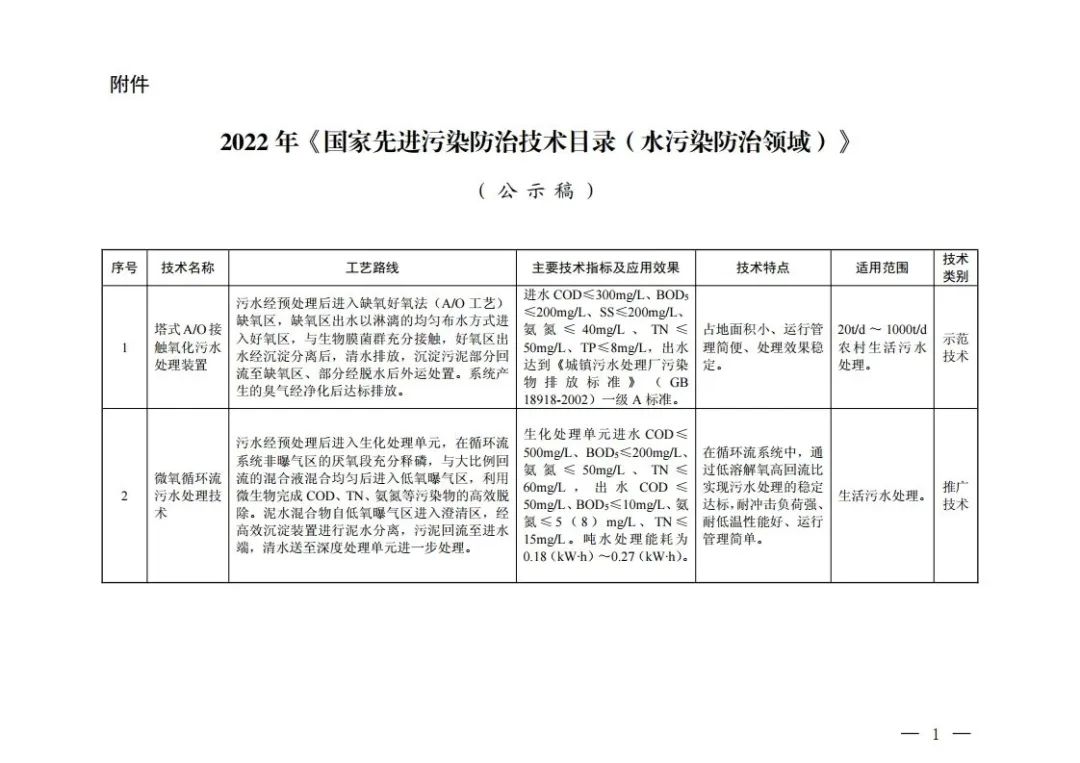于2022年《國家先進(jìn)污染防治技術(shù)目錄(水污染防治領(lǐng)域)》(公示稿)的公示