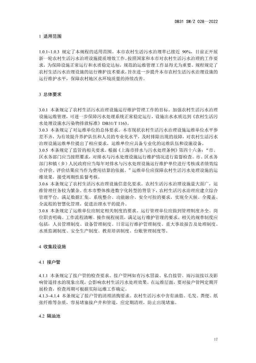日前,《上海市農(nóng)村生活污水治理運行維護技術(shù)規(guī)程》發(fā)布,本規(guī)程規(guī)定了農(nóng)村生活污水治理設(shè)施的運行維護技術(shù)要求。本規(guī)程適用于本市范圍內(nèi)所有農(nóng)村生活污水治理設(shè)施的運行維護管理。