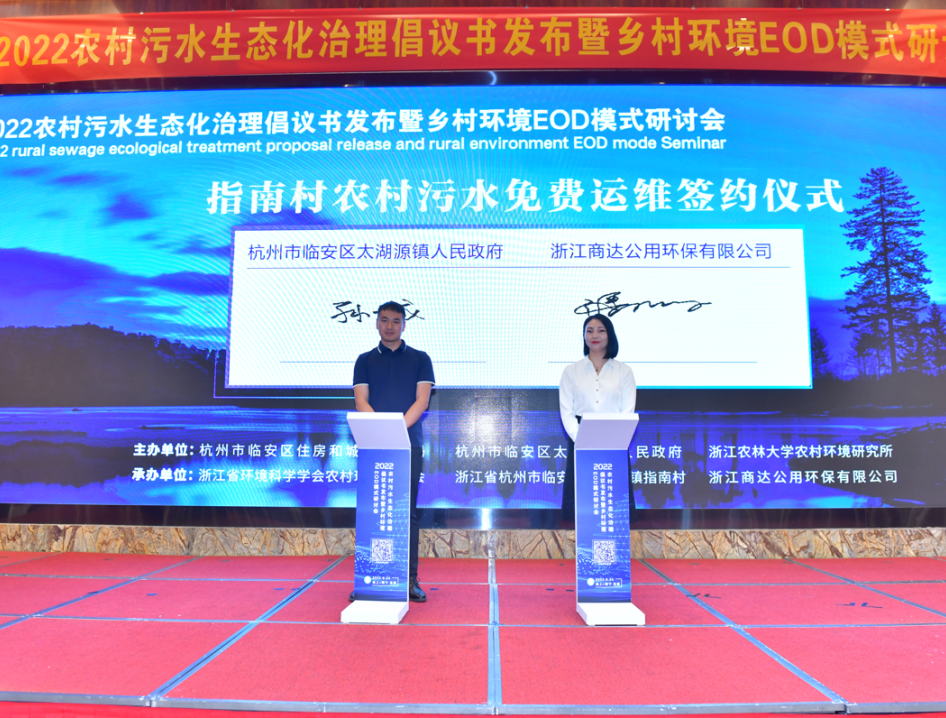 2022年,商達(dá)公用承辦2022農(nóng)村污水生態(tài)化治理倡議書發(fā)布暨鄉(xiāng)村環(huán)境EOD模式研討會,旨在為更好地推動農(nóng)村污水生態(tài)化治理,緩解資金瓶頸,助力鄉(xiāng)村振興與碳中和國家戰(zhàn)略,建設(shè)共同富裕示范區(qū)。