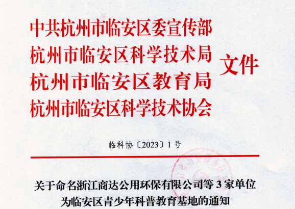 近日,商達(dá)公用臨安指南村示范站點(diǎn)(資源化站點(diǎn)、觀云站點(diǎn)、生態(tài)農(nóng)場)再添殊榮,被臨安區(qū)宣傳部、區(qū)科技局、區(qū)教育局、區(qū)科協(xié)等四部門命名為“臨安區(qū)青少年科普教育基地”。