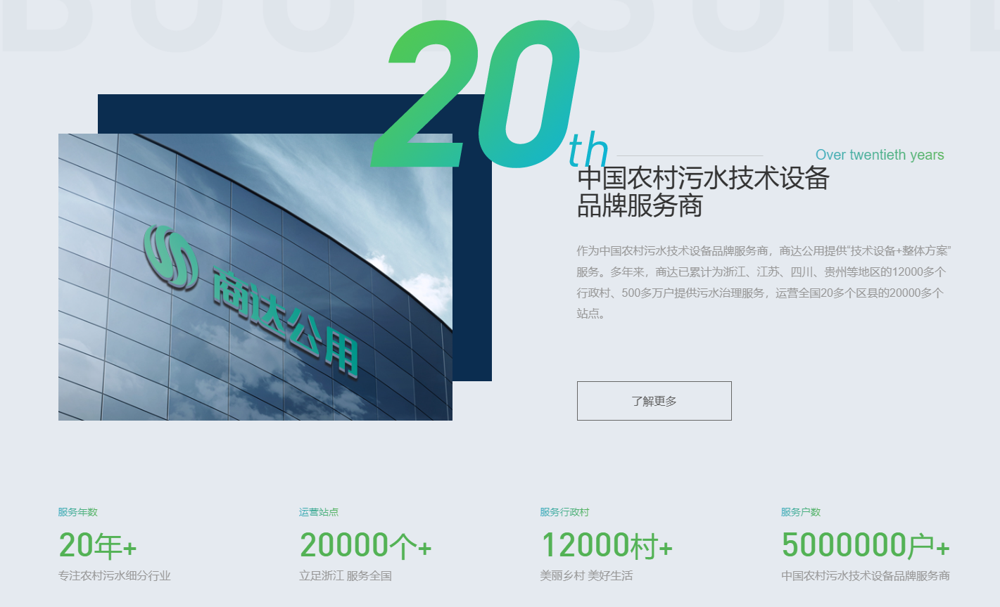 作為山東公用集團(tuán)在鄉(xiāng)村環(huán)境領(lǐng)域的投資發(fā)展平臺,商達(dá)公用定位為中國農(nóng)村污水技術(shù)設(shè)備品牌服務(wù)商。20年來,已累計(jì)為全國12000個(gè)村500萬戶提供污水治理服務(wù),運(yùn)營全國20個(gè)區(qū)縣的20000個(gè)站點(diǎn)。在E2O的村鎮(zhèn)污水處理年度盤點(diǎn)中,商達(dá)公用農(nóng)村污水處理總規(guī)模、設(shè)備供應(yīng)總規(guī)模排名第一。近兩年,商達(dá)也先后被評為農(nóng)村污水 “隱形冠軍”培育企業(yè)、“瞪羚企業(yè)”、浙江省“專精特新”企業(yè)、浙江省AAA級“守合同重信用”企業(yè)稱號等。