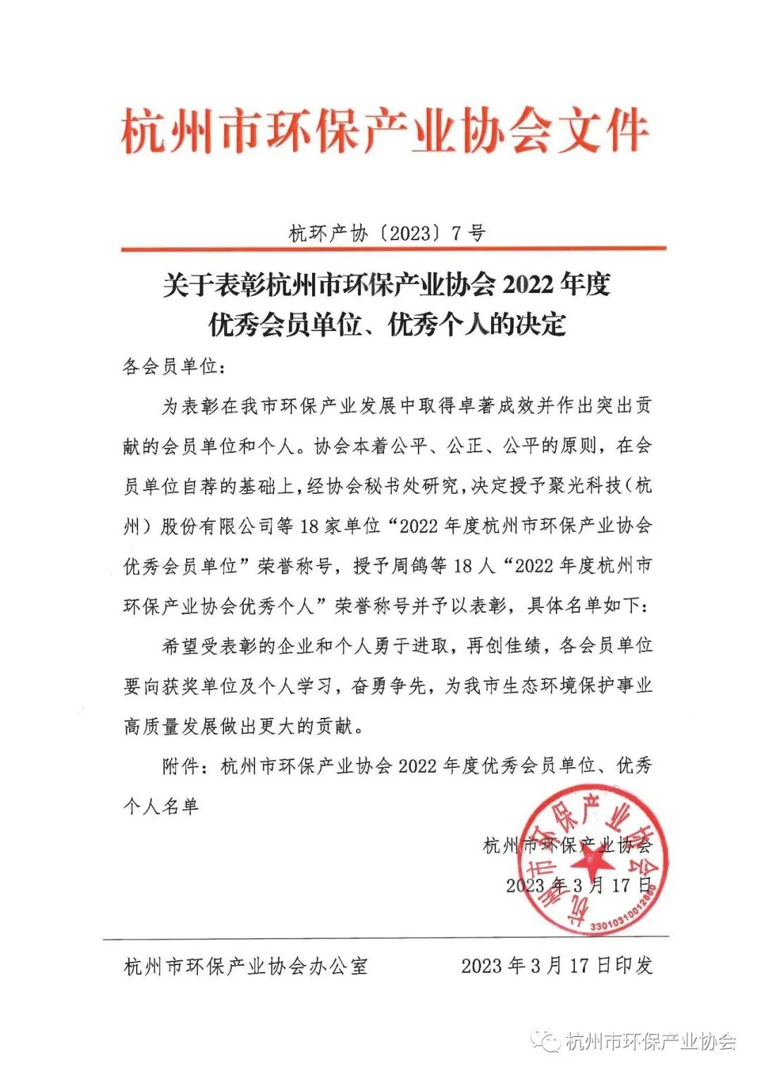 近日,杭州市環(huán)保產(chǎn)業(yè)協(xié)會開展了第二屆第四次會員大會暨迎亞運環(huán)境保障志愿服務活動。大會中,協(xié)會表彰了在我市環(huán)保產(chǎn)業(yè)發(fā)展中取得卓著成效并作出突出貢獻的會員單位和個人。浙江商達公用環(huán)保有限公司榮獲“2022 年度杭州市環(huán)保產(chǎn)業(yè)協(xié)會優(yōu)秀會員單位”榮譽稱號。