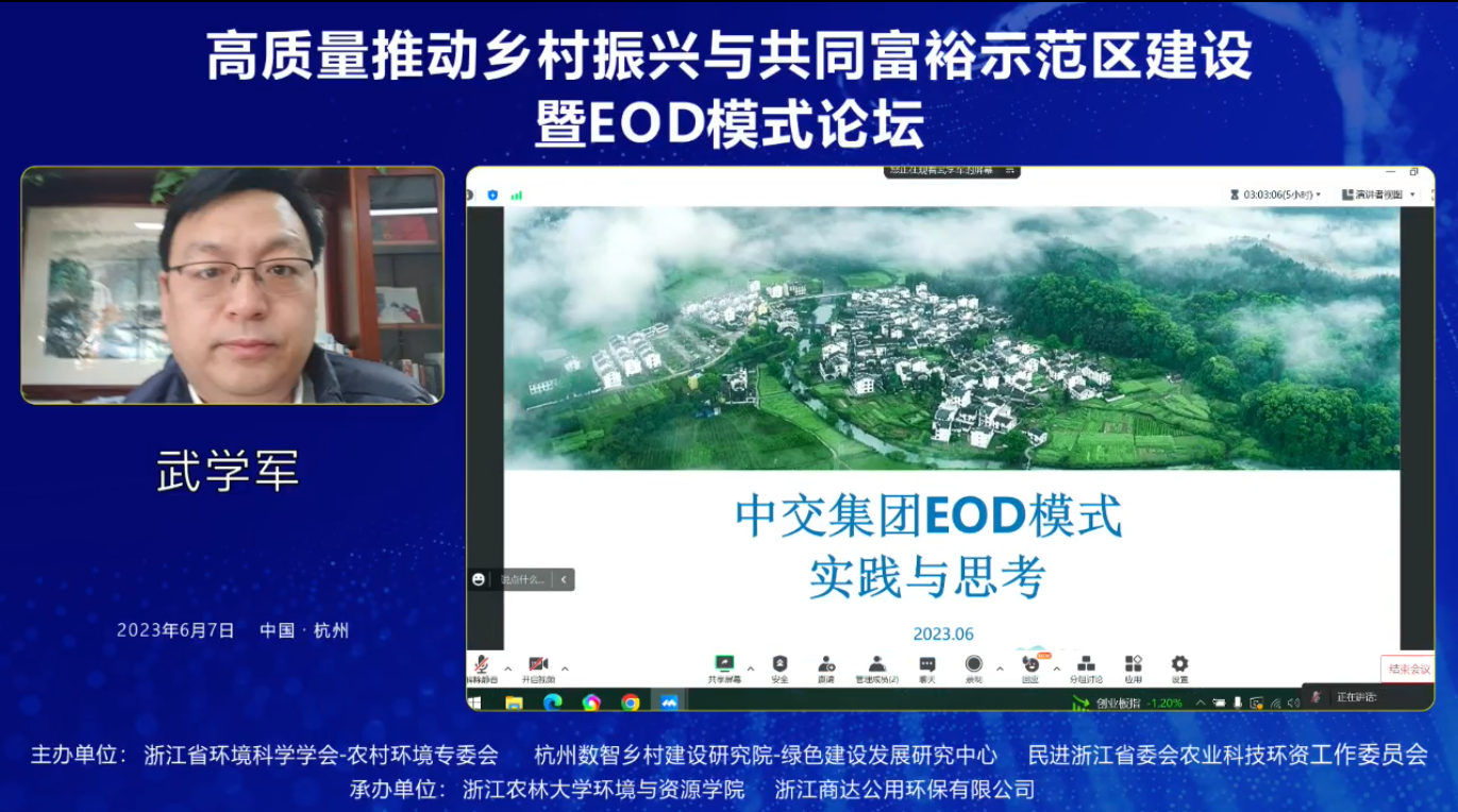 2023年6月7日,“高質(zhì)量推動(dòng)鄉(xiāng)村振興與共同富裕示范區(qū)建設(shè)暨EOD模式論壇”于杭州如期召開(kāi)。本次論壇由浙江省環(huán)境科學(xué)學(xué)會(huì)-農(nóng)村環(huán)境專委會(huì)、杭州數(shù)智鄉(xiāng)村建設(shè)研究院-綠色建設(shè)發(fā)展研究中心、民進(jìn)浙江省委會(huì)農(nóng)業(yè)科技環(huán)資工作委員會(huì)主辦,由浙江農(nóng)林大學(xué)環(huán)境與資源學(xué)院、浙江商達(dá)公用環(huán)保有限公司承辦。