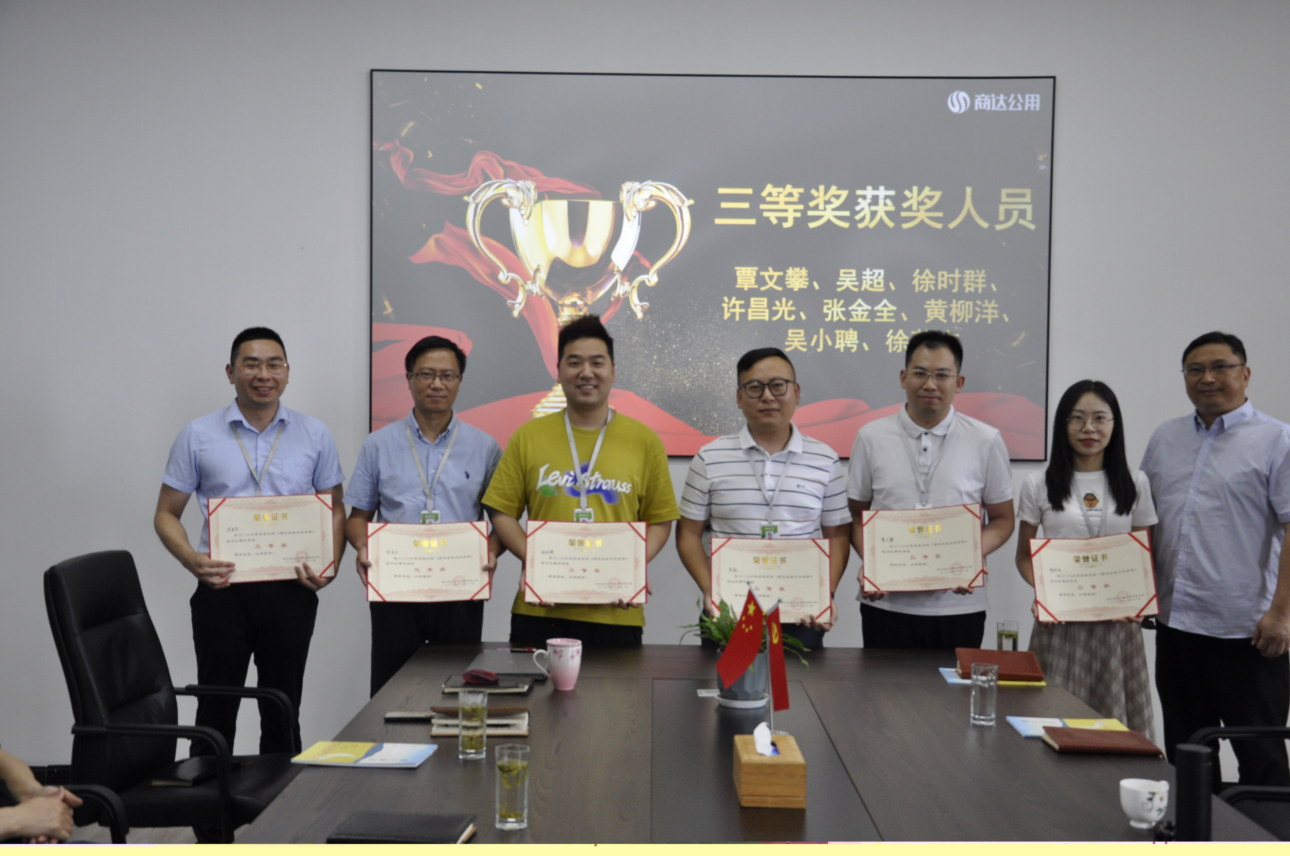 三等獎獲獎人員為覃文攀、吳超、徐時群、許昌光、張金全、黃柳洋、吳小聘、徐蔚杰,商達公用總工吳勝春為其頒獎。