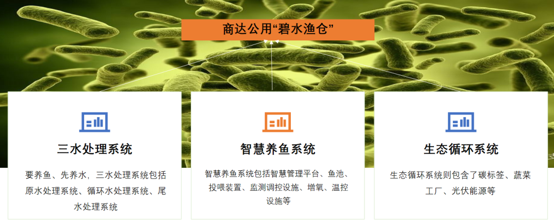 商達公用陸基養(yǎng)魚升級版--“碧水漁倉”系統(tǒng)包括三水(原水、循環(huán)水、尾水)處理系統(tǒng)、智慧養(yǎng)魚系統(tǒng)、生態(tài)循環(huán)系統(tǒng)3個子系統(tǒng),利用EEM菌技術,提供優(yōu)質質流動活水,健康管理的同時進行尾水循環(huán),全程數(shù)字化、智能化在線管理,具有標準化、高效化、綠色化、智慧化等特點,可實現(xiàn)集約、高產(chǎn)、生態(tài)、安全養(yǎng)殖。