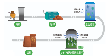 本項目通過人工收集生態(tài)農(nóng)場產(chǎn)生的秸稈和竹林廢棄物,通過粉碎機將各種物料粉碎并混合均勻,添加本公司生產(chǎn)的EEM菌劑,將堆體整體含水量調(diào)節(jié)至60%~70%,堆放進(jìn)入料倉內(nèi),用分子膜完全覆蓋,料倉內(nèi)部鋪設(shè)通風(fēng)管道間歇性通風(fēng),確保物料經(jīng)過好氧發(fā)酵能夠在短期內(nèi)完全腐熟。