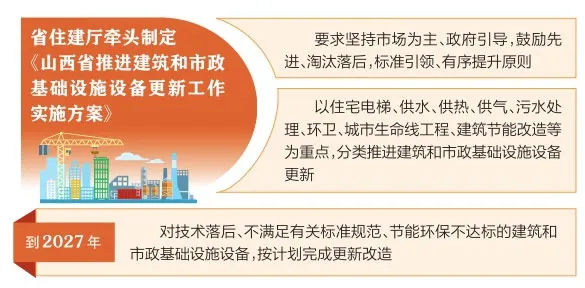 據(jù)山西省住建廳消息,《山西省推進(jìn)建筑和市政基礎(chǔ)設(shè)施設(shè)備更新工作實(shí)施方案》已經(jīng)山西省人民政府同意,于2024年5月27日正式印發(fā)。